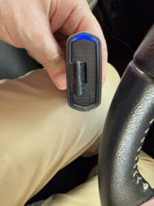 N-BoxのOBD2端子にダイレクトにアダプタを挿しました。今回延長ケーブル無しですが、エンジンオフから5分経過しても電源ランプ(LED点滅)は止まらず。